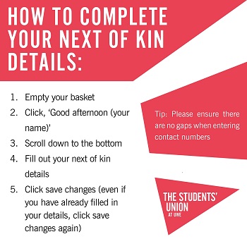 At the start of each Academic Year, students are required to complete their Next of Kin details before they are able to join any of our Sports Clubs. Here is some guidance on how to complete these details, please share this with your members:
