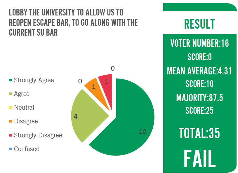 The SU Bar is very busy and it would be great to have another place open to deal with the demand. In the daytime the queues in the SU Bar can be quite long, so reopening Escape (in F Black) should help reduce this number.