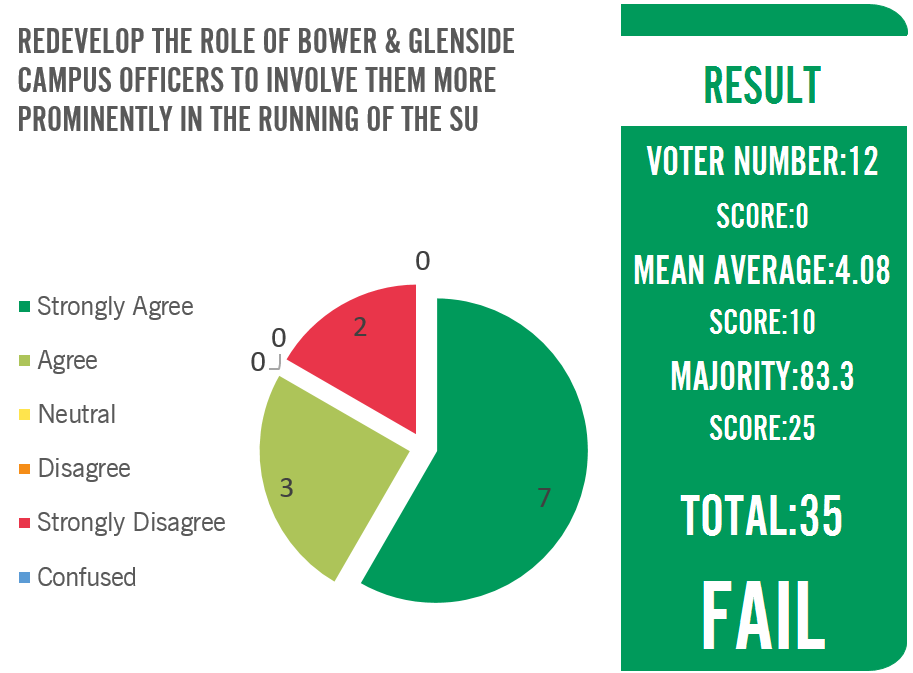 While financially, a full-time position might not be viable, there is still much more that the SU can do to develop their role. For example, non-Frenchay campus officers should be more closely involved in the general day-to-day operations of the SU. This could include involving them more directly & regularly in meetings about the SU's campaigns, policies, etc.