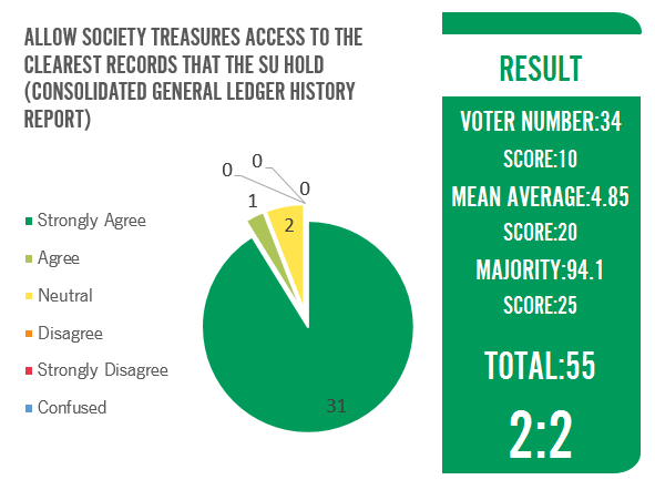 "The Union is not unwilling to share the “ledger” with society treasurers this currently isn’t part of our current process. Treasurers who ask for additional support or information are provided with the support to carry out their role If Treasurers wish to request a change in policy this along with any policy can be made through a student idea or via a society’s conference meeting"