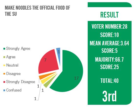 Establishing an official food of the SU could also be a commercial benefit that allows for noodle related sponsors to come forwards and offer great benefits to both the SU and the students that it represents. So, as long as the SU is no longer allergic to commercially beneficial ideas, this is one to latch on to for sure.