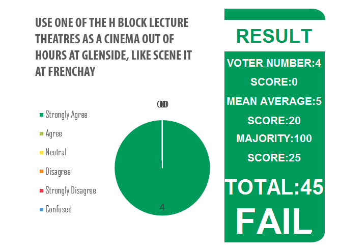 Extra Information: Students living at Glenside, in the adjacent Hollies, or in the local area should have more activities available to them in the evenings. I'm proposing an extension of Scene It where one of the larger lecture theatres at Glenside are used to show films for free.