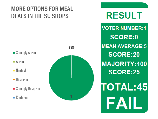 Extra Information: Those of us with dietary requirements have a great difficulty finding cheap food for lunch. Personally, I cannot eat bread so that leaves me with a choice between only two pasta pots that can only be found in the shop near onezone. I suggest more varieties of pasta, some salads, and anything else that can constitute as a main in the meal deal. Additionally, I cannot eat crisps so more options for snacks would be great. I know that fruit is available but I've personally never seen where this fruit is located in the shops.