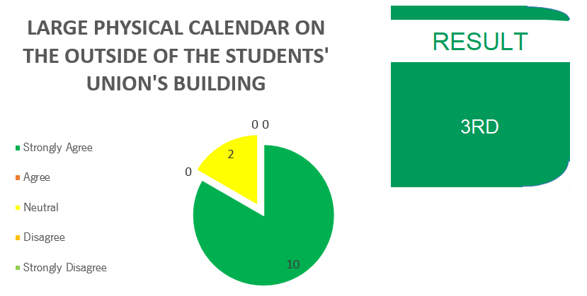 Many students do not know when or what events are happening across all campuses, even if they are advertised on the SU website. A large physical calendar could be installed between the glass window of the SU reception and automatic side door next to the SU shop on Frenchay campus.