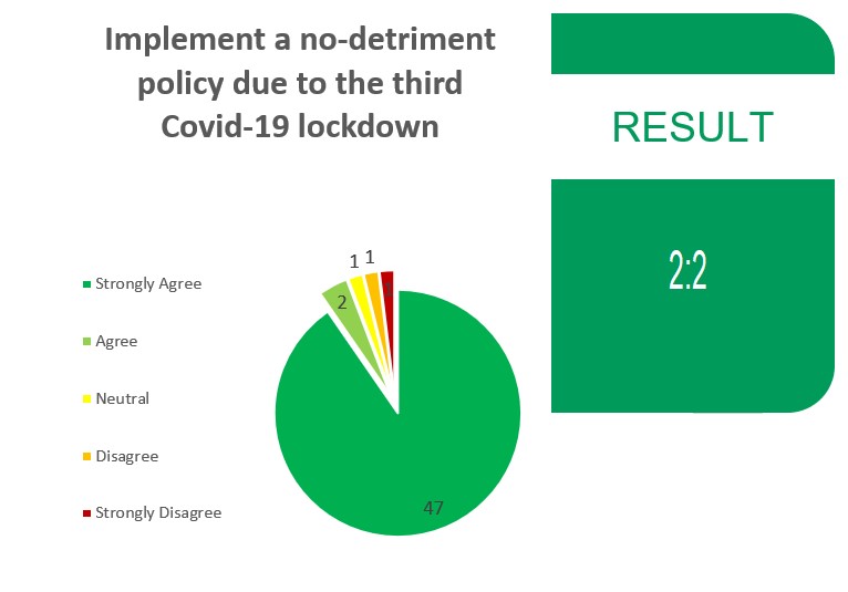 Extra Information: Students have spent months taking online courses, which are not at the same standard as pre-pandemic. A majority of students are suffering from mental health issues, whilst still being expected to produce the same quality of work as pre-Covid. Uncapped resits do not compensate for a total lockdown situation, a policy is needed to ensure that students grades are not adversely affected by the lower quality of education that is being provided.