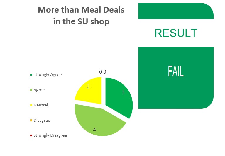 Extra Information: The SU shops on campuses are so vital for many students. We appreciate that so much variety has come into the U-block shop, but it would be great to have more options in the shop. Tinned food, and when the vegetable stall is not in D block, some fresh fruits and vegetables would be very useful.